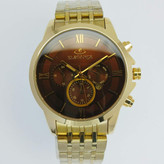 بدنه ساعت از استیل ضدزنگ ساخته شده و رنگ طلایی آن ثابت و بدون تغییر است. ضخامت قاب مناسب است و روی مچ حس سنگینی یا سبک بیش از حد ندارد. طراحی کلاسیک و ساده است اما در عین حال لوکس جلوه میکند.
