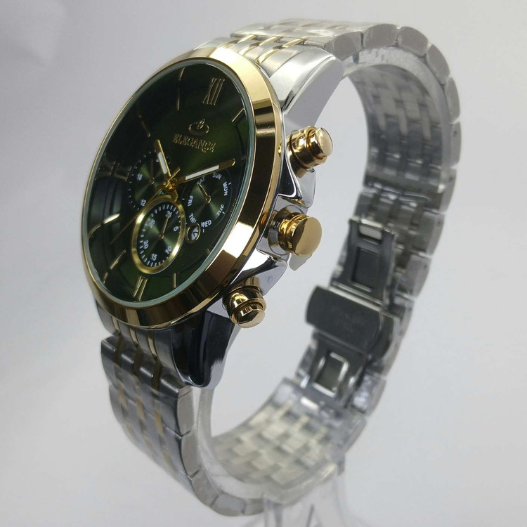 بدنه ساعت از استیل ضدزنگ ساخته شده و رنگ نقره ای_طلایی آن ثابت و بدون تغییر است. ضخامت قاب مناسب است و روی مچ حس سنگینی یا سبک بیش از حد ندارد. طراحی کلاسیک و ساده است اما در عین حال لوکس جلوه میکند.