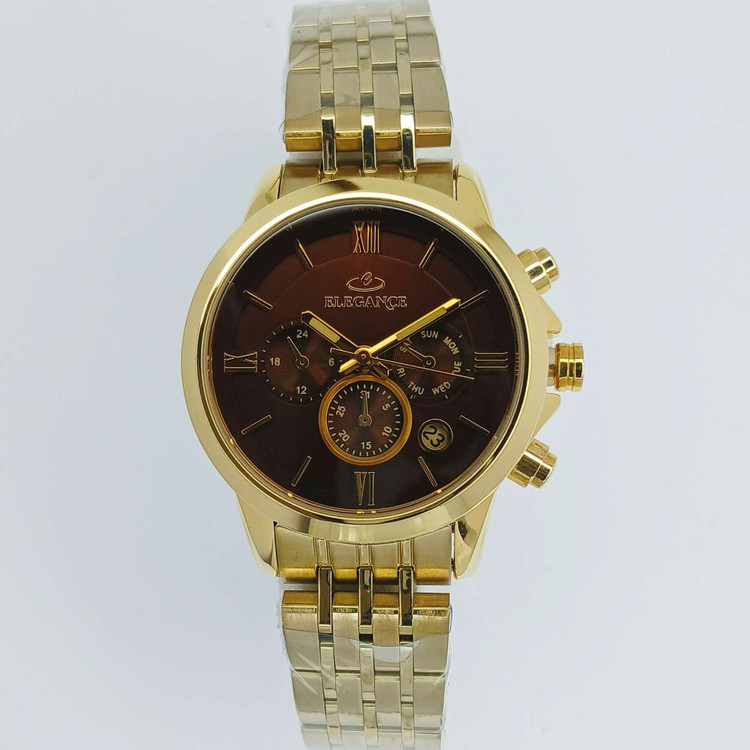 بدنه ساعت از استیل ضدزنگ ساخته شده و رنگ طلایی آن ثابت و بدون تغییر است. ضخامت قاب مناسب است و روی مچ حس سنگینی یا سبک بیش از حد ندارد. طراحی کلاسیک و ساده است اما در عین حال لوکس جلوه میکند.